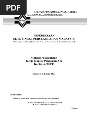 Manual Pelaksanaan Kerja Kursus 9004 Stpm 2021 Pdf Terhad 1 Majlis Peperiksaan Malaysia Malaysian Examinations Council Peperiksaan Sijil Tinggi Course Hero
